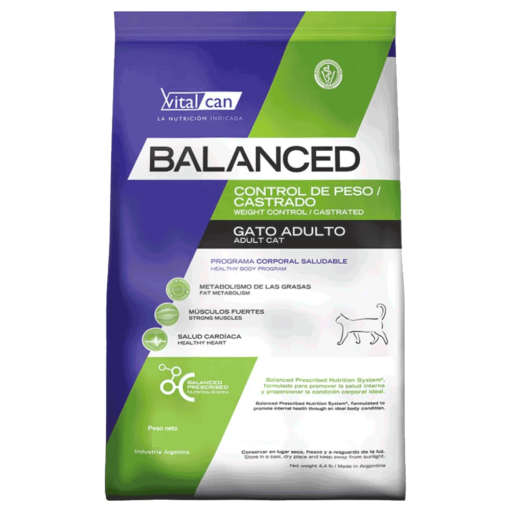 Balanced Control de Peso y Castrado está diseñado para gatos castrados, obesos o con tendencia a la obesidad. Su fórmula con proteínas de alta calidad, indispensables para los gatos castrados, obesos o con tendencias a la obesidad, ayuda a conservar masa muscular cuando se produce un descenso del peso.