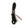 Es de nylon con mango acolchonado. Su ancho es de 2 cm y su largo es de 3 metros y se extiende hasta los 5 metros