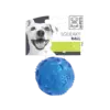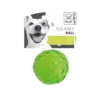 Esta pelota está hecha de goma termoplástica, es suave y resistente a la vez, además cuenta con textura para limpiar las encías de tu perro, colaborando así a la higiene dental.